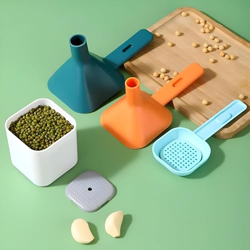 - تجمع مجموعة المطبخ 6 في 1 هذه بين الأدوات الأساسية - فاصل صفار البيض وقمع بمقاسين ومصفاة شبكية دقيقة وعصارة ثوم وحامل أكواب - في حل واحد مضغوط، مما يزيل الفوضى ويوفر مساحة خزانة قيمة.