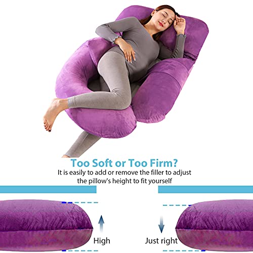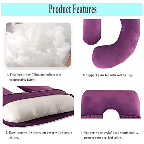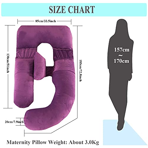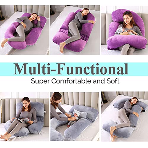 SHILINTONG - مخدة كبيرة للحوامل تستخدم لدعم الجسم بالكامل بتصميم قابل للتغيير ليكون بشكل حرف U او H C J بمقاس 60 بوصة مزودة بغطاء للازالة والتنظيف ارجواني ، مخمل، من مورو