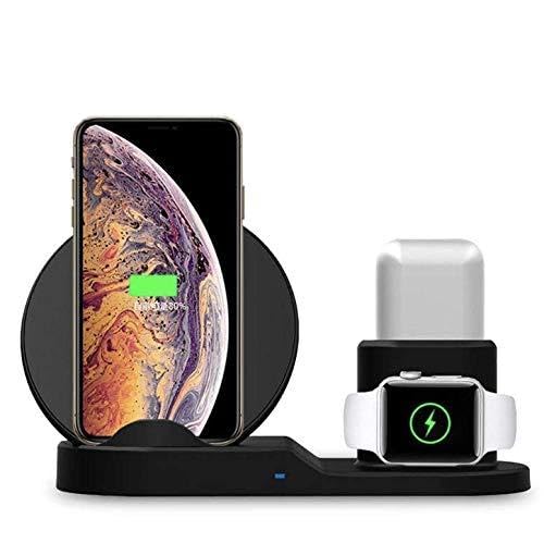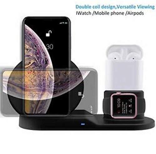 Premier Wireless Charger - شاحن لاسلكي 3 في 1 مزود بمسند متوافق مع ساعات ابل ووتش وسماعات ايربودز (اسود)
