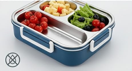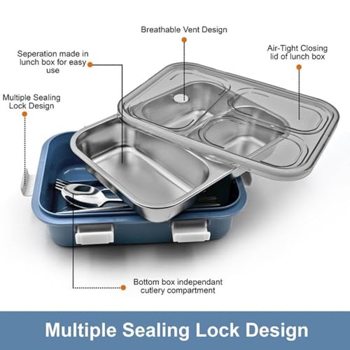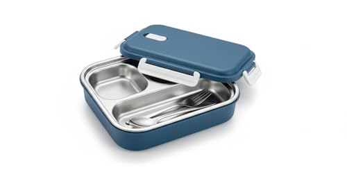Generic - حافظة طعام من الستانلس ستيل، لون أزرق تركواز، 3 أقسام مع أدوات المائدة، تصميم مانع للتسرب للمدرسة والعمل من بوكس برو