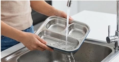 - مقاس عملي: تصميم صغير وواسع يناسب الوجبات ذات الحجم القياسي، مع أسطح سهلة التنظيف وهيكل آمن للغسل في غسالة الأطباق.
