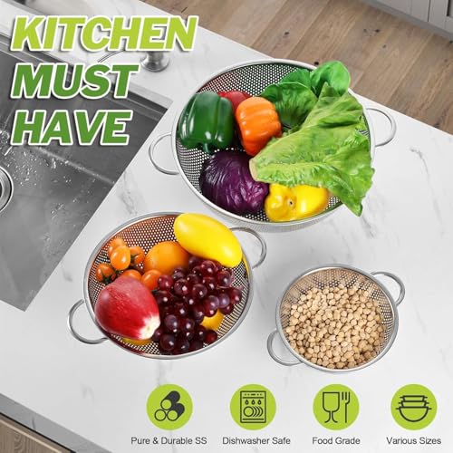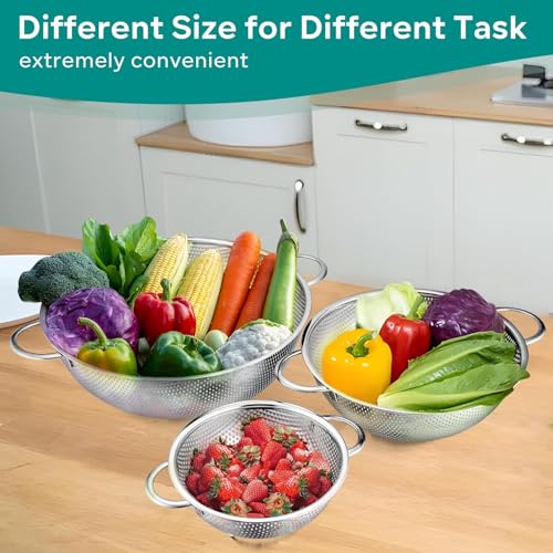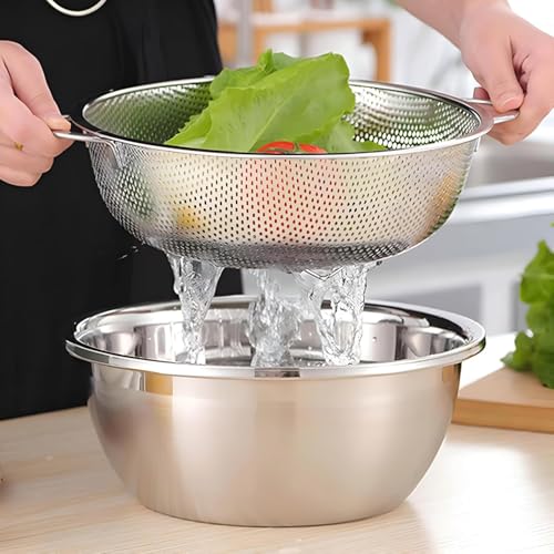 - تصميم متعدد الاستخدامات 3 في 1: تأتي بثلاثة أحجام مريحة (15 سم، 20 سم، 22 سم)، مما يسمح لك بالتعامل مع مهام المطبخ المتعددة - شطف الفواكه وتصريف المعكرونة وغسل الأرز وتنظيف الخضروات - كل ذلك مع مجموعة واحدة. مثالية لكل من المطابخ المنزلية والاستخدام الاحترافي في الطهي.