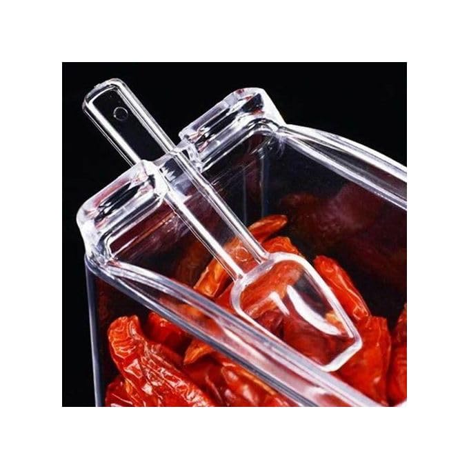 - 【رؤية شفافة】يتميز كل برطمان أكريليك بتصميم شفاف بالكامل يجعل من السهل تحديد نوع وكمية التوابل بالداخل على الفور دون فتح الغطاء، مما يتيح إدارة التوابل دون عناء ويضمن عدم نفاد المكونات الأساسية أثناء جلسات الطهي.