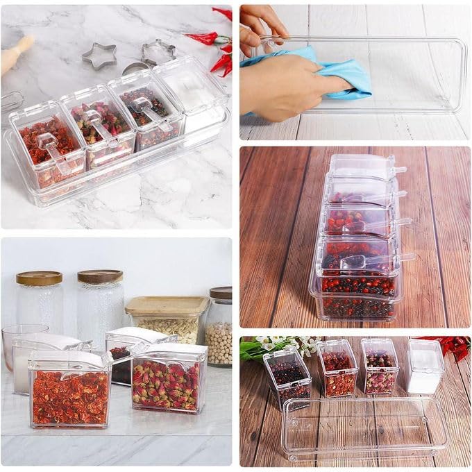 - 【تخزين منظم】تأتي مجموعة التوابل المصنوعة من الأكريليك هذه المكونة من 4 قطع مع حامل أنيق وصغير يحافظ على جميع التوابل المستخدمة بشكل متكرر مرتبة بأناقة على طاولة مطبخك، مما يسمح بالوصول السريع أثناء إعداد الوجبات مع تقليل الفوضى والحفاظ على مساحة طهي مرتبة وجذابة للاستخدام اليومي.