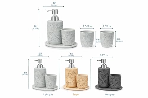 Generic - طقم حمام سيراميك مكون من 3 قطع، موزع صابون سعة 400 مل ومنظم حوض كامل للصابون وفرش الأسنان ومعجون الأسنان وكوب الشطف، لون رمادي