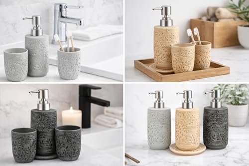 - طقم كامل من 3 قطع - يتضمن موزع صابون وحامل فرشاة أسنان وكوب لحوض حمام منظم بالكامل.