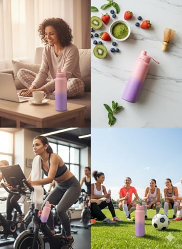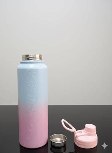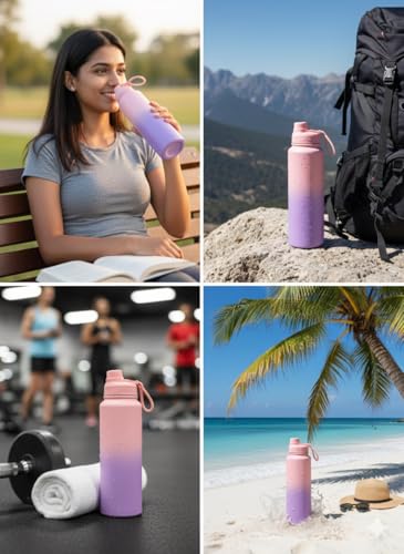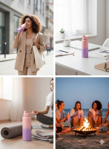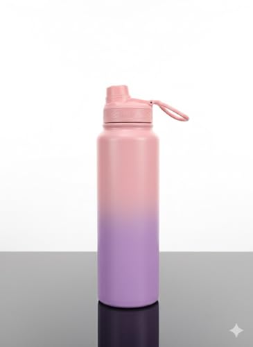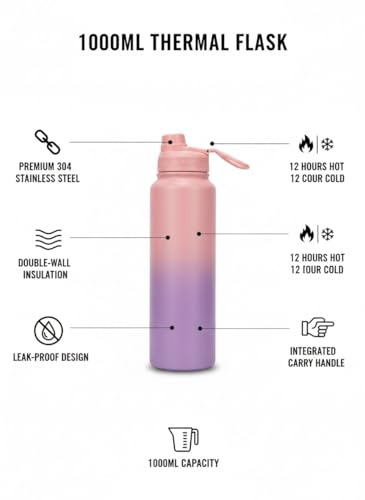 Generic - زجاجة مياه حرارية فاخرة من الفولاذ المقاوم للصدأ 304، سعة 1000 مل،، مع عزل مزدوج، تحافظ على سخونتها وبرودتها لمدة 12 ساعة، ومقبض حمل مدمج (بينك وبنفسجي)