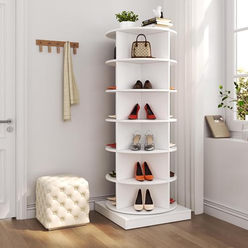 Generic - خزانة تخزين فاخرة دوارة 360 درجة فاخرة دوارة 360 درجة - تصميم عمودي لتخزين الاحذية والشنط - موفرة للمساحة وانيقة لغرفة النوم او خزانة الملابس (ابيض، 1)