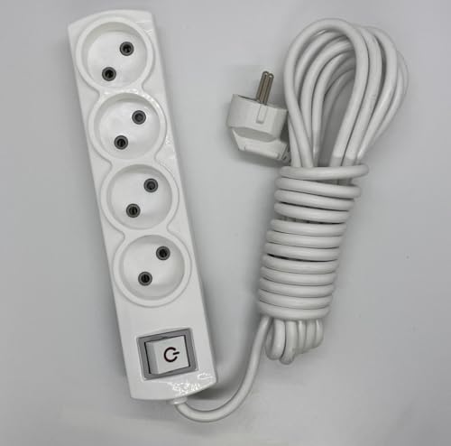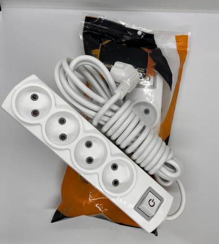 Generic - شريط طاقة متعدد الاغراض بـ4 منافذ مع مفتاح كهربائي، ابيض، 16 امبير 250 فولت 3500 واط اقصى طاقة، سلك تمديد كهربائي