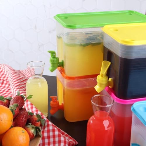 - حاوية مشروبات متعددة الاستخدامات: يناسب هذا الموزع العصائر أو الماء أو الشاي المثلج أو عصير الليمون أو الكوكتيلات أو أي مشروب بارد، وهو إضافة متعددة الأغراض لمطبخك أو ثلاجتك أو مناسباتك الخارجية. استمتع بمشروبات منعشة في أي وقت وفي أي مكان.