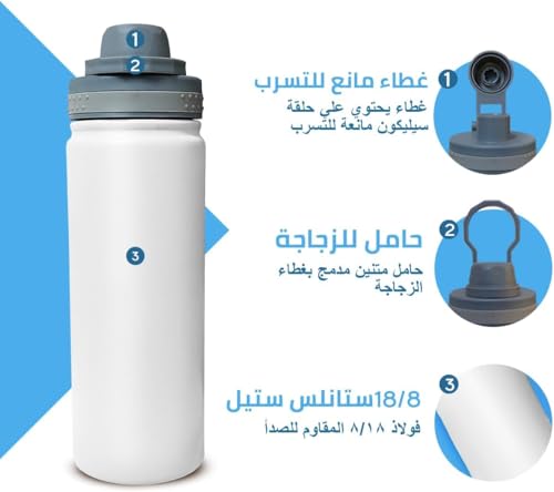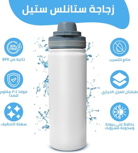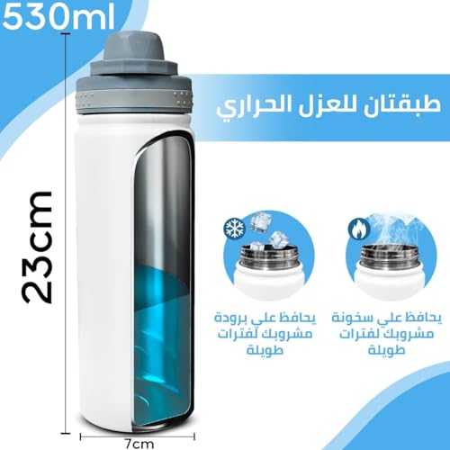 Generic - زجاجة مياه فاخرة من الستانلس ستيل سعة 530 مل - غطاء بقفل قلاب مانع للتسرب، معزولة بجدار مزدوج، تحافظ على المشروبات ساخنة وباردة، قارورة سفر متينة لصالة الالعاب الرياضية والمكتب والمدرسة والاستخدام