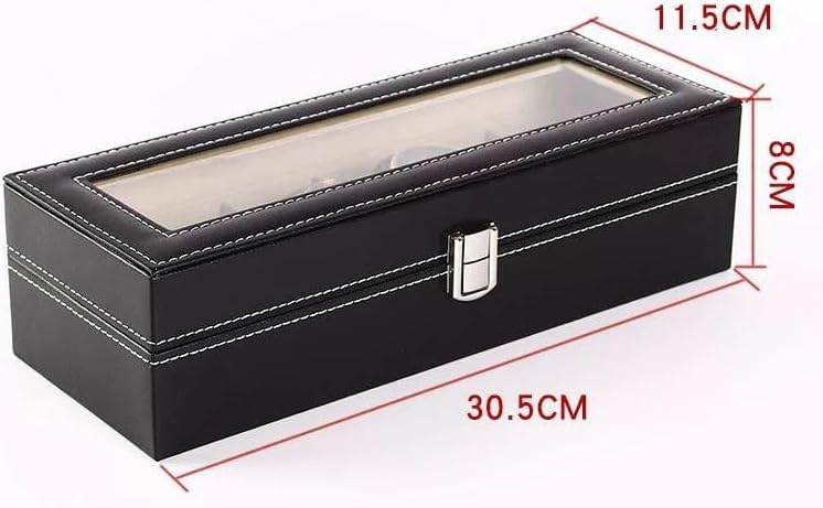 Generic - صندوق منظم ساعات من الجلد الفاخر بـ 6 فتحات مع غطاء شفاف - حقيبة تخزين انيقة للساعات والاساور والاكسسوارات - صندوق هدايا من جلد البولي يوريثين عالي الجودة للرجال والنساء
