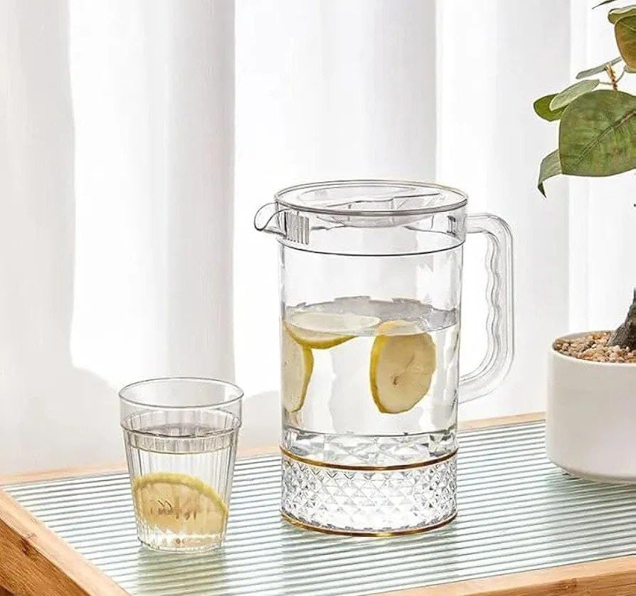 - 【مجموعة مشروبات شاملة】تتضمن هذه المجموعة إبريق واسع مع أربعة أكواب متطابقة، مما يوفر حلاً كاملاً لتقديم الماء أو العصير أو المشروبات المثلجة، مما يضمن أسلوبًا متناسقًا وراحة عملية للعشاء العائلي أو التجمعات الاجتماعية أو المناسبات الرسمية مع زيادة عرض الطاولة.