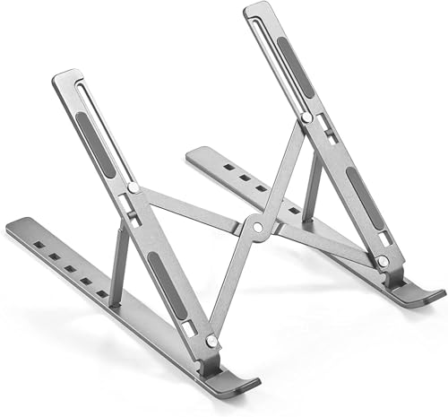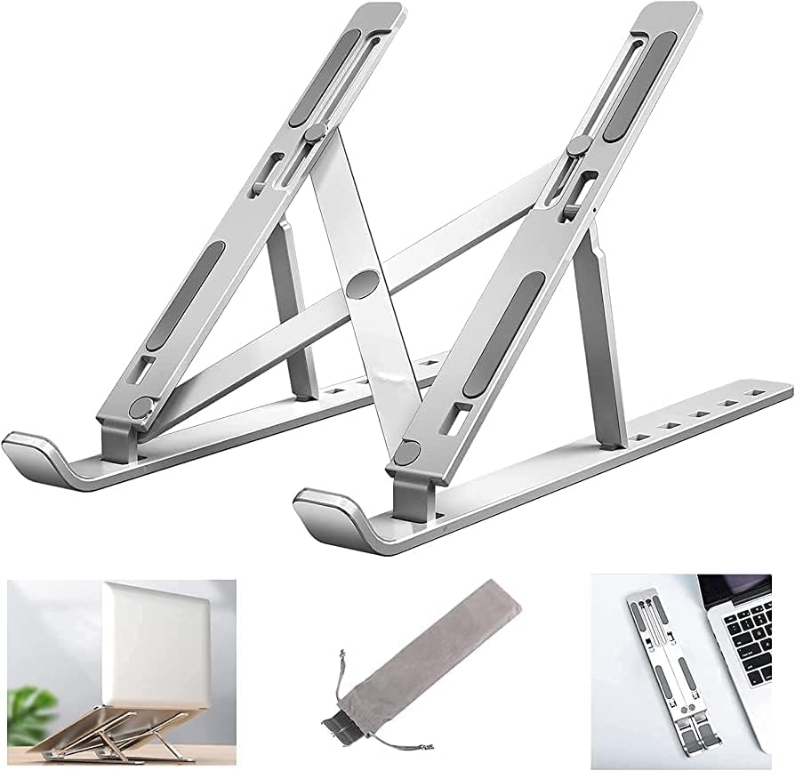 Generic - حامل مكتبي معدني من الألومنيوم الممتاز قابل للطي متوافق مع اللاب توب وماك بوك والتابلت شنطة لاب قابلة للتعديل بحلقة تعديل الارتفاع بتصميم مريح للحماية الحرارة الزائدة فضي