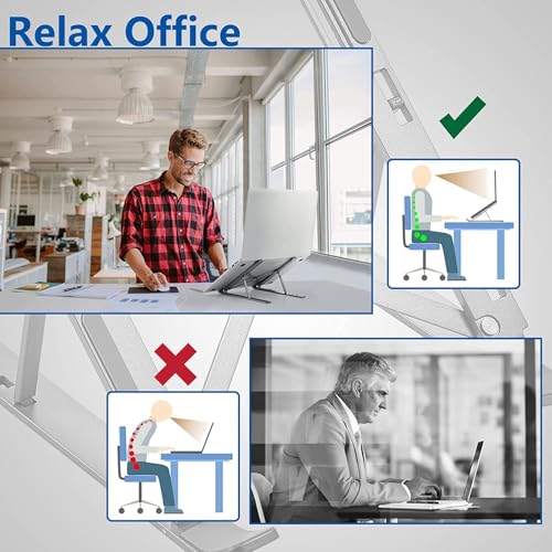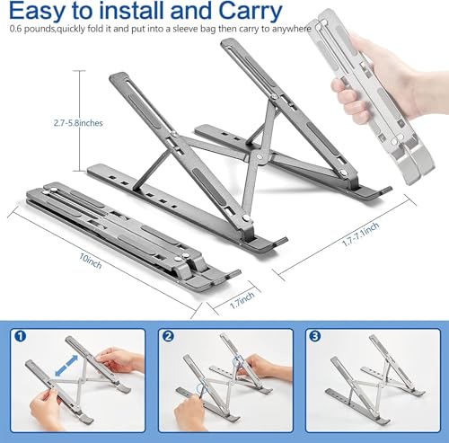 - تصميم عملي رائع: حامل لاب توب مصنوع من خليط معدني من الألومنيوم مع تصميم مصقول وعملي. مع قواعد السيليكون غير القابلة للانزلاق، يمكن لحامل اللاب توب تجنب خطر خدش أجهزتك والحفاظ على اللاب توب الخاص بك ثابتًا على الطاولة.