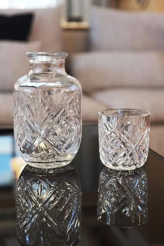 Generic - قارورة زجاج كريستال فاخرة وعملية، مثالية لتقديم المشروبات الباردة، تأتي بجودة مستوردة عالية وكوب أنيق مدمج للاستخدام المريح والأنيق. (شفاف 2 قطعه)