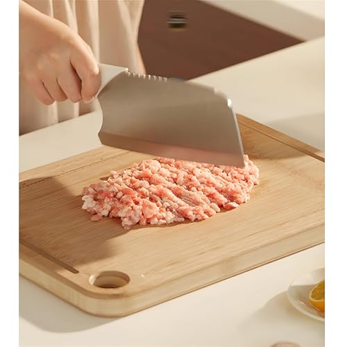 - لوح تقطيع من الخيزران المحبب عالي الجودة، مضاد للميكروبات بشكل طبيعي ولطيف على السكاكين، يوفر متانة تدوم طويلاً بينما يعطي حبيبته الطبيعية الأنيقة مظهرًا أنيقًا يعزز ديكور أي مطبخ.