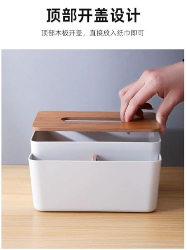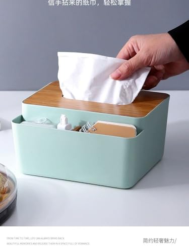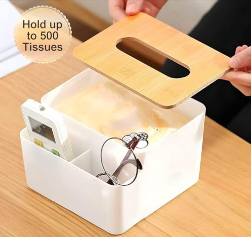 Generic - علبة مناديل بغطاء من الخيزران الفاخر - تخزين متعدد الوظائف للمناديل وأجهزة التحكم عن بعد والاساسيات الصغيرة، غطاء خشبي انيق وقاعدة بلاستيكية متينة