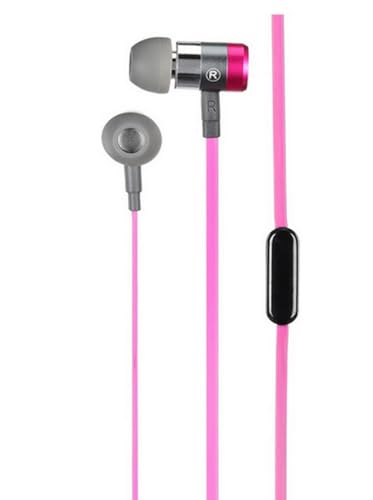 Generic - سماعات أذن رياضية معدنية ستيريو عالية الجودة بصوت جهير ممتاز مع ميكروفون مدمج باللون الوردي في الأذن - ضمان لمدة 5 سنوات مع خاصية إلغاء الضوضاء المتقدمة