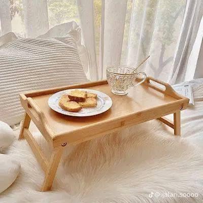 Generic - ترابيزة زان ممتازة بإطار ثابت وقابل للطي، مفصلات نحاسية توفر سهولة التخزين، مثالية كترابيزة فطور أو كمكتب صغير متنقل في أي مكان. (1 قطعه)