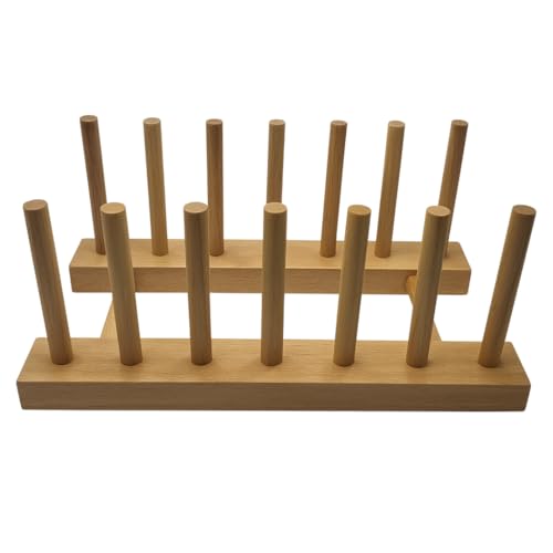 generic - رف اطباق من خشب الزان الفاخر مع نظام تصريف، منظم مطبخ موفر للمساحة من 7 اقسام للاطباق والاطباق والأكواب والاواني بلمسة نهائية من خشب الزان الطبيعي