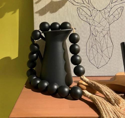Generic - مسبحة ديكور خشبية سوداء فاخرة، 50 خرزة كبيرة مع شرابة من الخيش، سبحة ديكور منزلي اسلامية بسيطة لشهر رمضان والعيد والمساحات الروحية (اسود، عبوة واحدة))