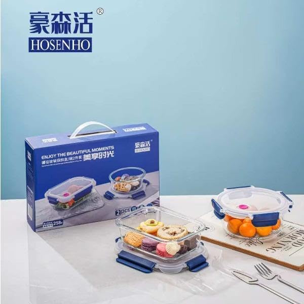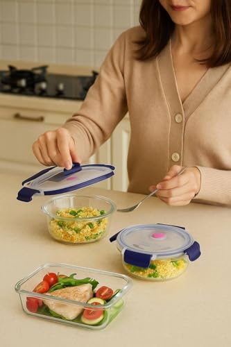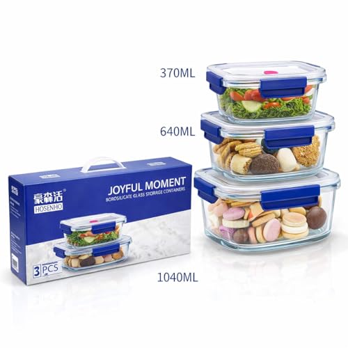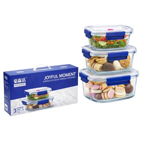 Generic - طقم اوعية تخزين طعام من زجاج البوروسيليكات الفاخر مكون من 3 قطع مع اغطية محكمة الغلق والميكروويف والفرن وغسالة الصحون، حاويات مطبخ لتحضير الوجبات (3 قطع، مستطيلة)