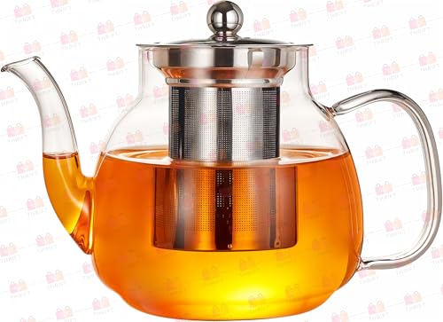 Thrift - إبريق شاي من زجاج البوروسيليكات بمصفاة من الفولاذ المقاوم للصدأ 304 قابلة للإزالة، آمن على البوتاجاز والميكروويف وغسالة الأطباق، صانع الشاي المزهر أو الشاي السائب، غلاية مقاومة للحرارة، 800 مل