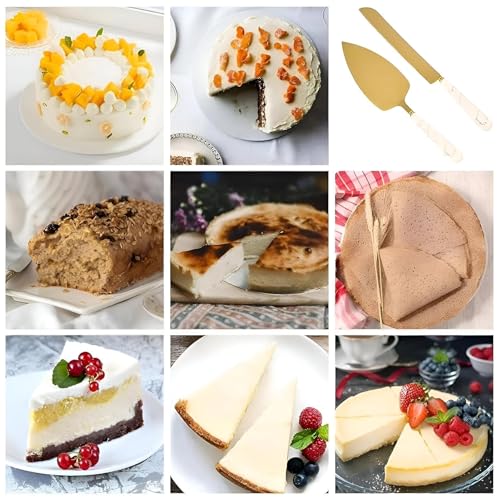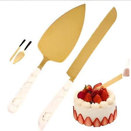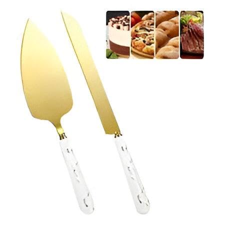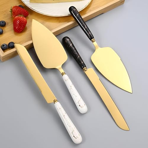 Generic - مجموعة تقديم الكيك الفاخرة - أداة تقديم مريحة بمقبض رخامي مع شفرة حادة للغاية، مثالية للمنزل أو المناسبات، مجموعة من قطعتين بألوان متنوعة
