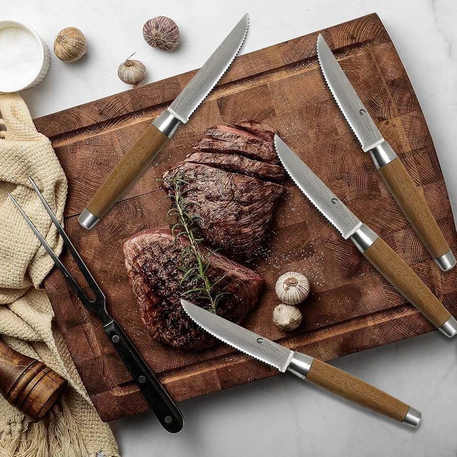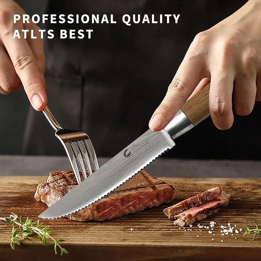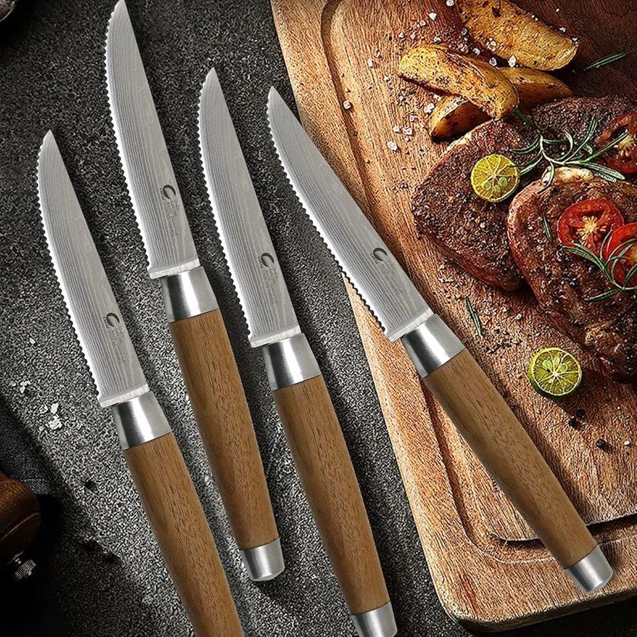 Generic - طقم سكاكين مطبخ مسننة منحنية فاخرة من الستانلس ستيل - قطعتين بالوان مختلطة، حادة للغاية، قبضة متينة ومريحة للطبخ المنزلي (شكل 3)