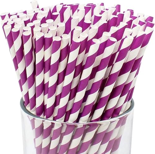Generic - شفاطات ورقية مخططة فاخرة قابلة للتحلل البيولوجي للاستعمال مرة واحدة,شاليموه ماصة ورقية قابلة للتحلل البيولوجي - متينة وصديقة للبيئة ((26 قطعة،موف))