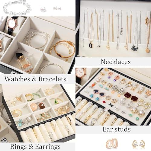 - 【حل مثالي للهدايا】يعد منظم المجوهرات الجلدي الأنيق هذا هدية مثالية لأعياد الميلاد أو الذكرى السنوية أو العطلات أو المناسبات الخاصة، مما يوفر حل تخزين أنيق وعملي ومدروس لعشاق المجوهرات، يجمع بين الرقي والعملية في تصميم جاهز للاستخدام يثير إعجاب أي شخص يقدر التنظيم والفخامة.