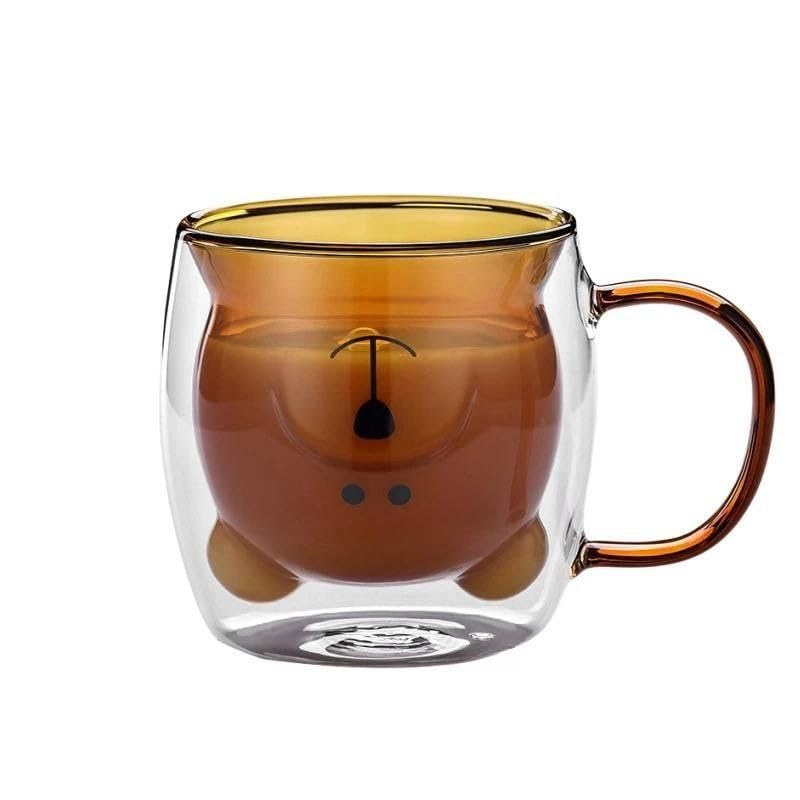 Generic - كوب زجاجي حراري فاخر مزدوج الطبقات ثلاثي الابعاد سعة 250 مل مصنوع يدويا من البورسليكات الشفاف، كوب قهوة وشاي لطيف بلون عشوائي للمنزل والمطبخ