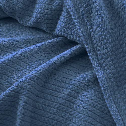Relax home linens - بطانية زينة من القطن المصري بنمط أوركيد ناعمة جدًا وخفيفة الوزن، تصميم منسوج أنيق، مقاس كينج 2.55 × 2.25 متر، مثالية للسرير والكنبة والكراسي، لون أزرق انديجو