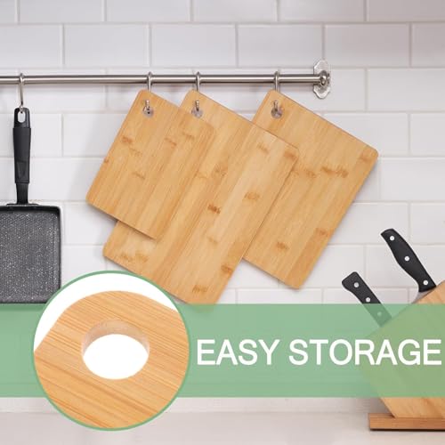 - السلامة والراحة - السلامة أمر بالغ الأهمية في المطبخ. تأتي مجموعة ألواح التقطيع الخاصة بنا مصممة بفتحات ناعمة لسهولة التعليق والتخزين. يساعد هذا التصميم المدروس على منع الحوادث والحفاظ على مطبخك منظمًا.