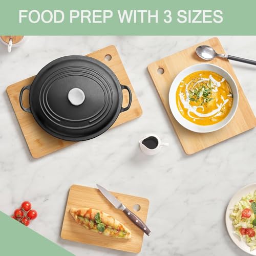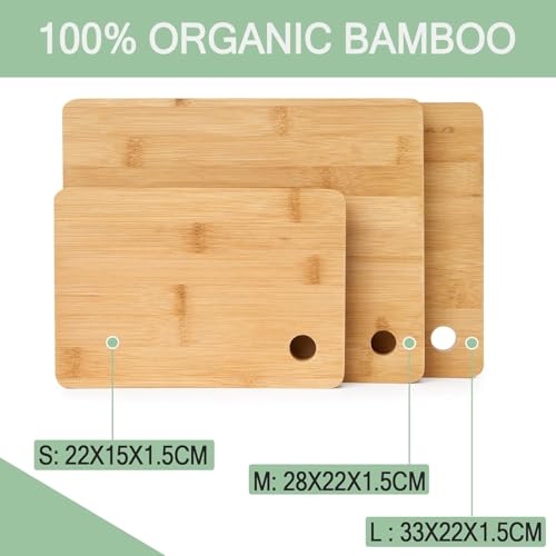 Vivo Technologies - الواح تقطيع خشبية فاخرة سميكة للغاية - مجموعة الواح تقطيع من الخيزران العضوي الطبيعي، 33 × 22 سم / 28 × 22 سم / 22 × 15 سم - مثالية لنحت اللحوم وتقطيع الخضروات والجبن والخبز
