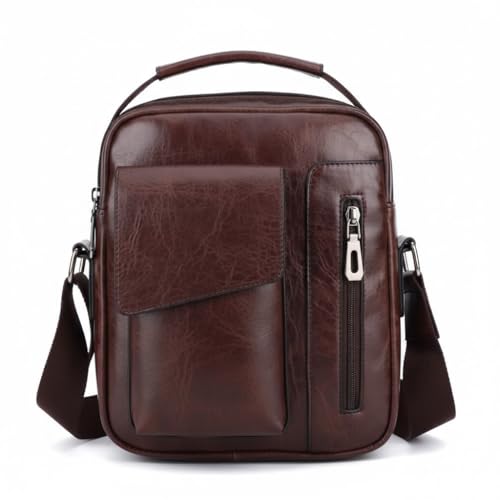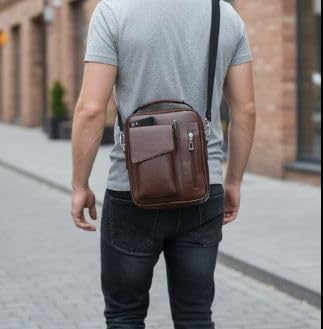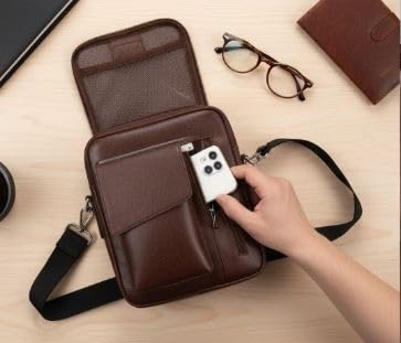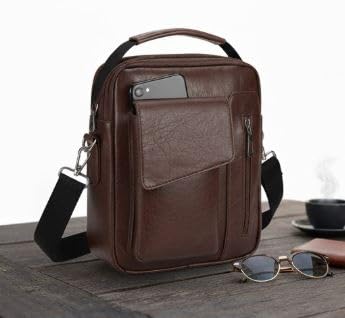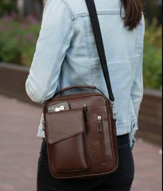 Generic - شنطة كروس فاخرة من الجلد الصناعي بلون بني - شنطة كروس فاخرة من الجلد الصناعي باللون البني، متعددة الجيوب مع حزام كتف قابل للتعديل