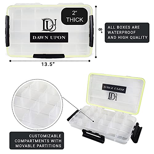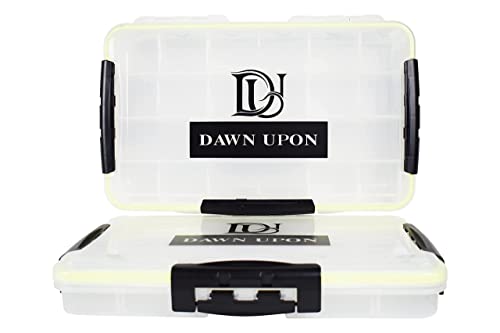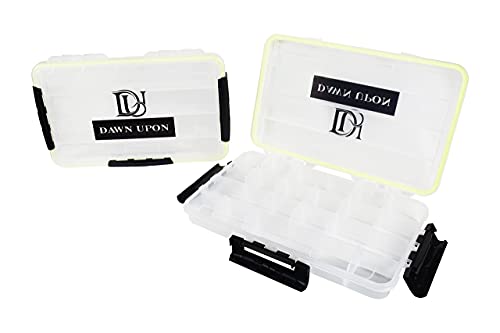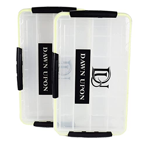 DAWN UPON - صناديق أدوات صيد ممتازة مع صواني مقاس 3700 - مجموعة من قطعتين - حافظات تخزين بلاستيكية لتنظيم أدوات الصيد والأدوات والاكسسوارات - متينة ومقاومة للماء - 4-24 مساحة تخزين قابلة للتعديل - مقابض سوداء