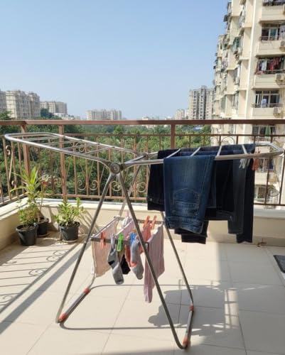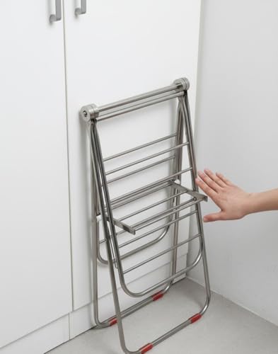 Spaceshoop - رف تجفيف ملابس معدني قابل للطي ممتاز (فولاذ مقاوم للصدأ) - منشر غسيل الملابس موفر للمساحة داخلي/خارجي (1، فضي)