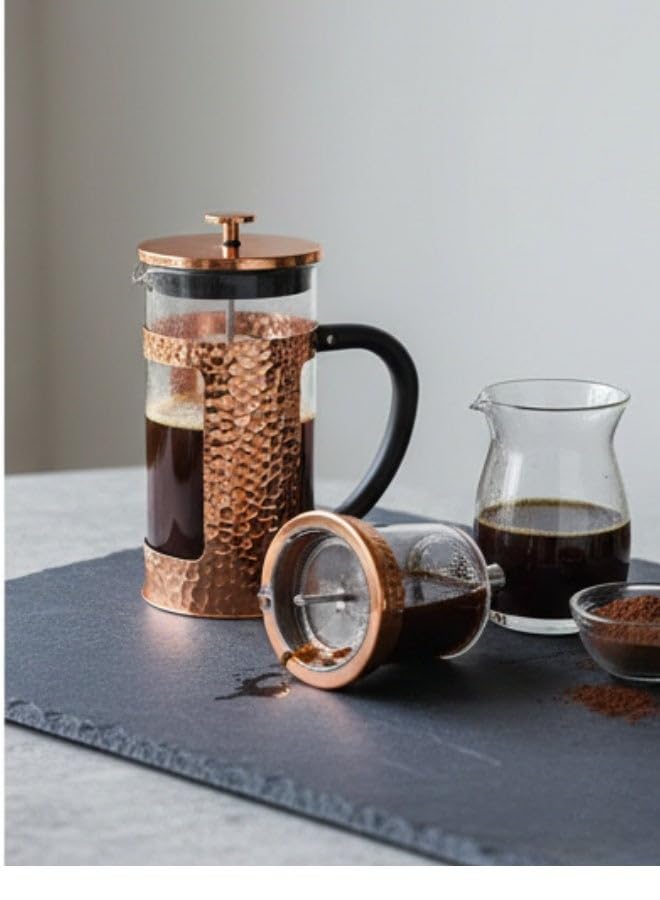 Generic - ماكينة تحضير القهوة الفرنسية الفاخرة 600 مل - زجاج البوروسيليكات مع لمسة نهائية من النحاس، مكبس مزدوج الفلتر من الستانلس ستيل، ماكينة تحضير القهوة والشاي