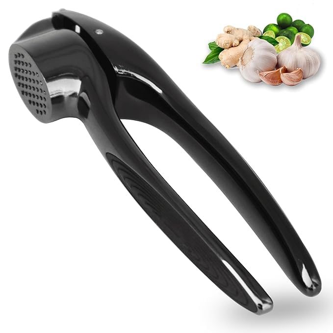 Generic - هراسة ثوم فاخرة – مفرمة ثوم احترافية سهلة العصر والتنظيف، مقاومة للصدأ، فعالة لسحق الزنجبيل - أسود