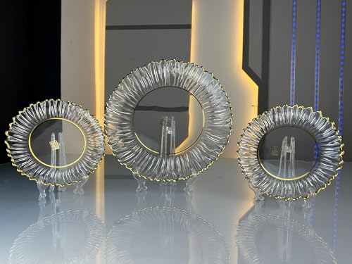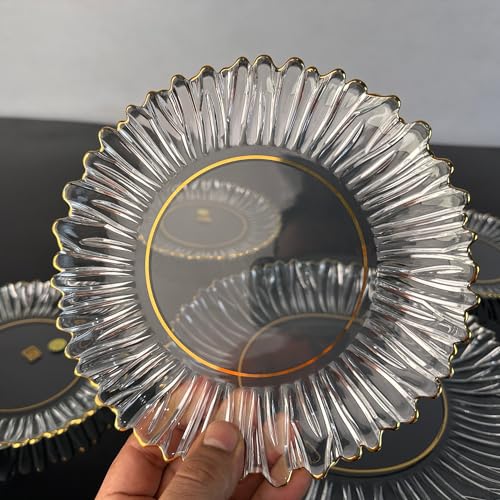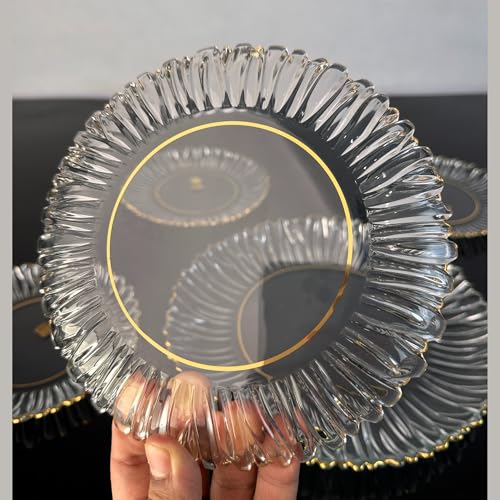- تصميم فاخر: أطباق عشاء كريستالية شفافة مع حواف ذهبية أنيقة وتصميم منحوت يضيف لمسة من الفخامة إلى مائدتك