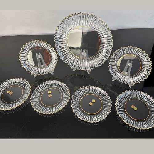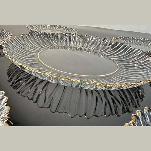 Generic - طقم جاتوه زجاجي فاخر – 7 قطع كريستال شفاف بحواف ذهبية – أطباق تقديم منحوتة للمناسبات والضيافة الراقية