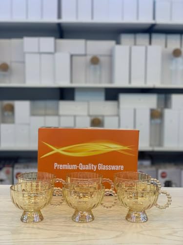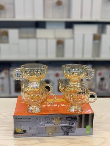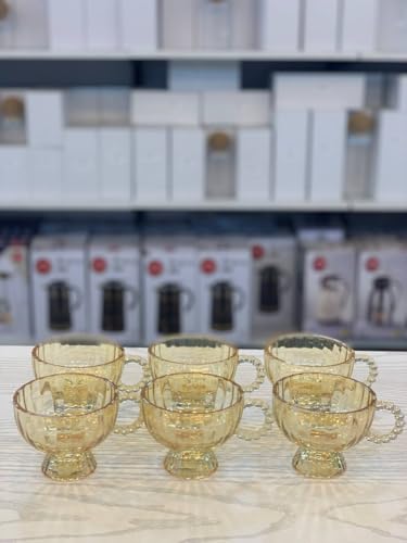 - مجموعة فاخرة: طقم من 6 أكواب زجاجية عالية الجودة بتصميم كلاسيكي مع مقابض مزخرفة بحبات اللؤلؤ