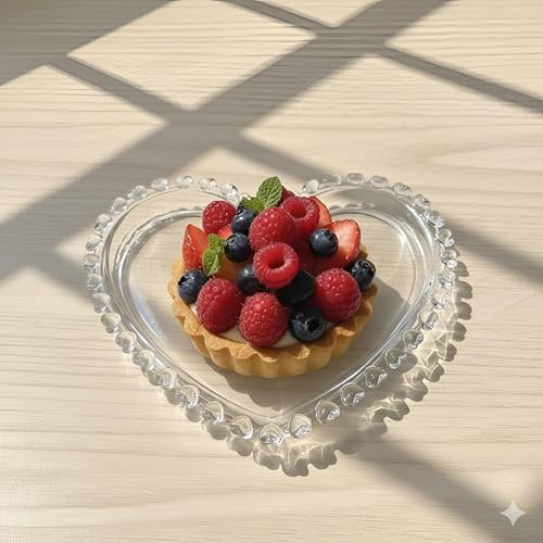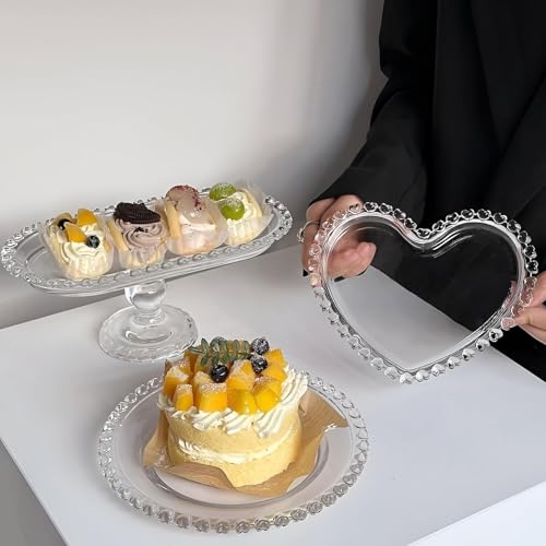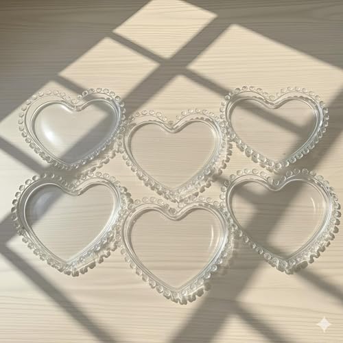 Generic - أطباق زجاجية أنيقة على شكل قلب، طقم أطباق شفافة للحلويات والكعك والمعجنات، أدوات مائدة مستوردة وجذابة من 6 قطع