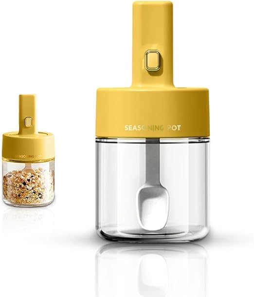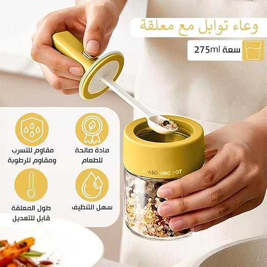 Generic - برطمان توابل زجاجي، حاويات توابل محكمة الغلق بملعقة، برطمانات تخزين مطبخ بسعة كبيرة 275 ملليلتر للاستخدام المنزلي، طقم برطمانات تخزين زجاجية صفراء للتوابل والبهارات
