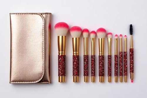 Generic - مجموعة فرش مكياج لامعة فاخرة، 10 فرش ناعمة احترافية مع شنطة سفر مغناطيسية لكريم الاساس والمزج والكونتور ومكياج العيون