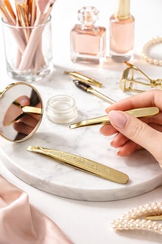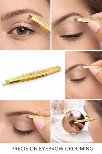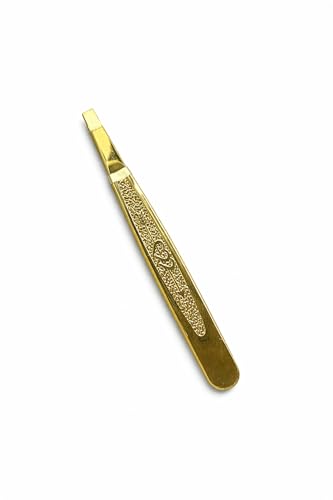 Generic - ملاقط بطرف مائل ذهبي فاخر لتشكيل الحواجب وازالة شعر الوجه، اداة نتف دقيقة من الستانلس ستيل مع مقبض مزخرف للعناية الاحترافية