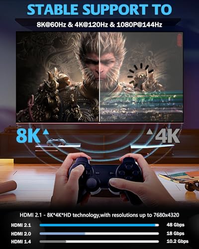 Generic - كيبل HDMI ممتاز، سرعة عالية 8K، نايلون مضفر، موصلات مطلية بالذهب، متوافق مع التلفزيون ووحدة التحكم في الالعاب والكمبيوتر