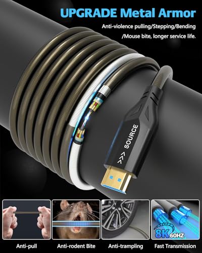 - أداء عالي السرعة: يوفر كابل اتش دي ام اي 8 كيه الممتاز معدلات نقل بيانات فائقة السرعة، مما يضمن فيديو وصوت واضح للغاية لإعداد الترفيه الخاص بك دون تأخير أو تداخل